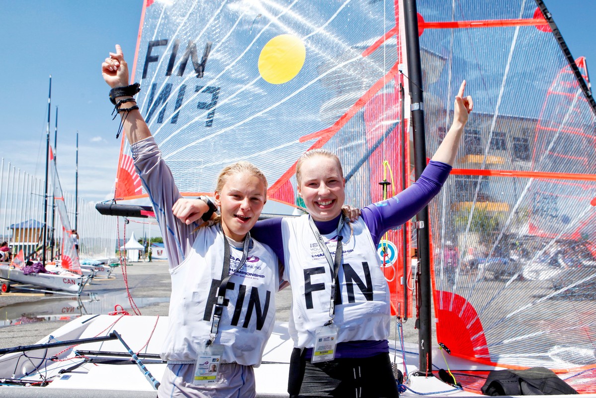 There were twists and turns in the girl’s 29er as the last race caused a shake-up at the top. However, it was Finland’s Sirre Kronlof and Veera Hokka who were celebrating at the end.