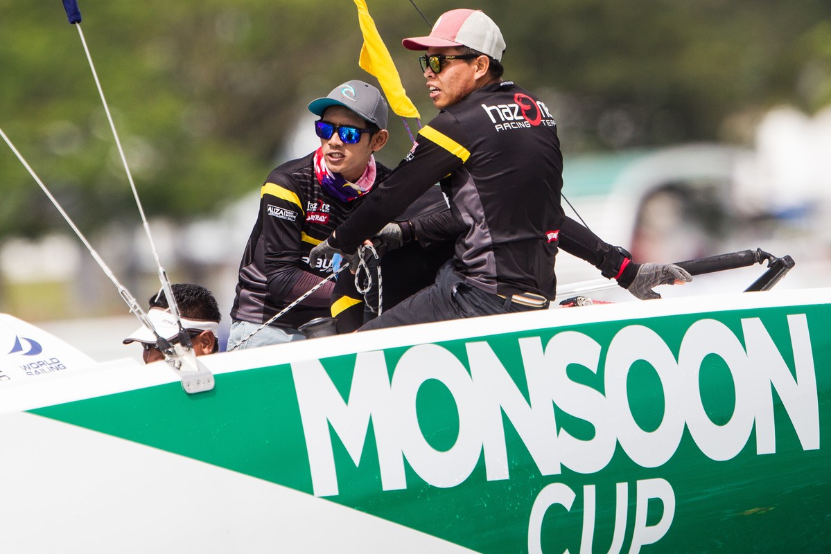 Fans of the Monsoon Cup didn't have to wait long for the first major upset of the regatta, when in Match 1 of Flight 1 in Qualifying, local sailor Hazwan Dermawan beat Australia's Keith Swinton on Malaysian home waters.