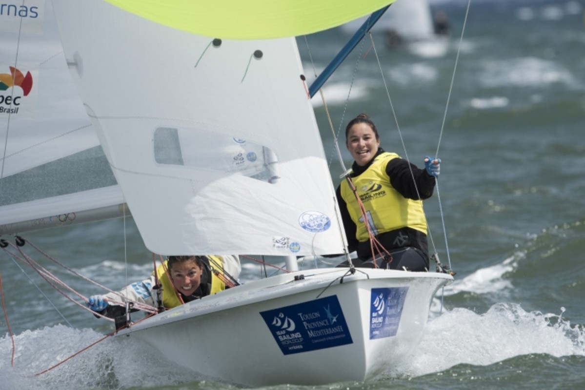 Fernanda Oliveira and Ana Luiza Barbachan of Brazil won gold in the Women's 470 for the second time in three years at the 2015 edition of Sailing World Cup Hyères.