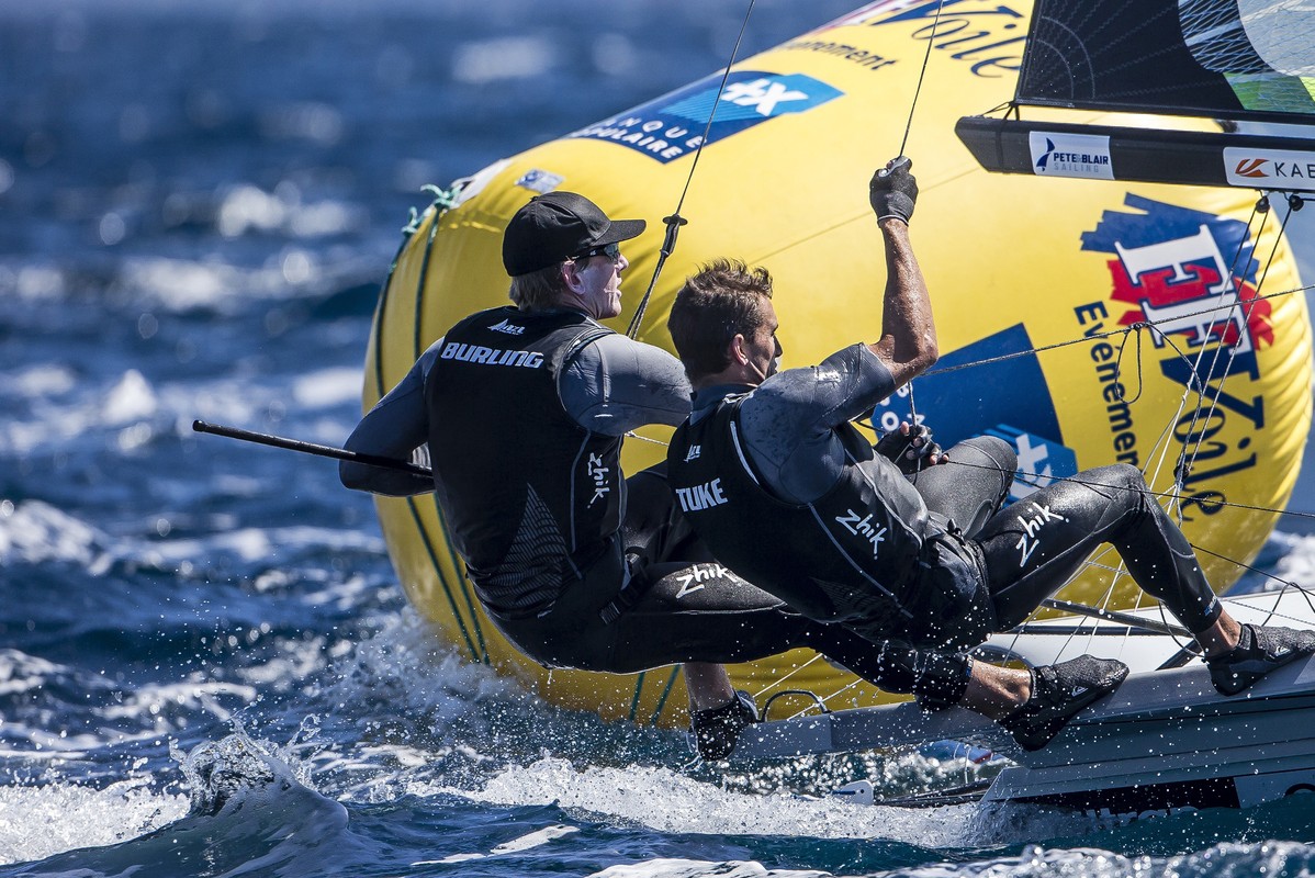 It was survival mode in the Nacra 17 and out of the 33 starters, just 14 finished the single race.