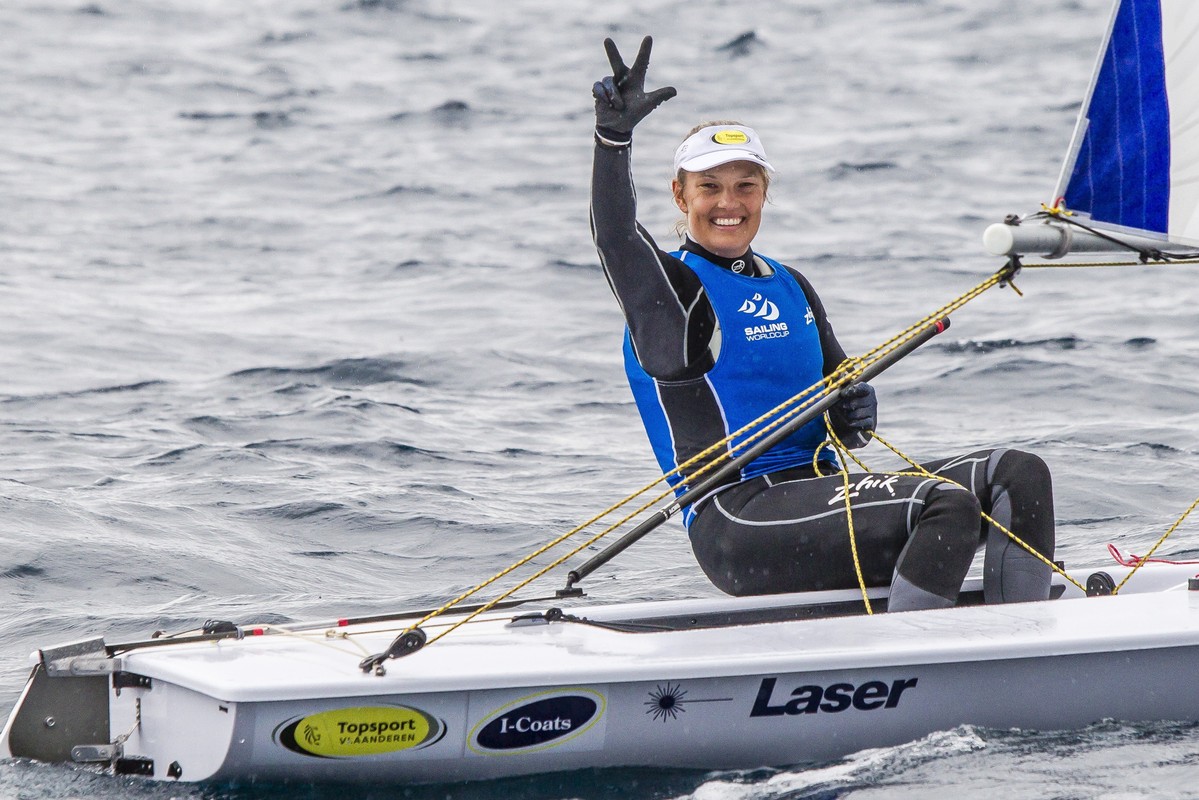 Belgium’s Evi Van Acker (BEL) took her third consecutive Laser Radial victory in Hyères after a straight shoot-out between herself and Josefin Olsson (SWE). The pair had an almost unassailable advantage over the chasing pack heading into the Medal Race and were split by two points, it was who beat who.