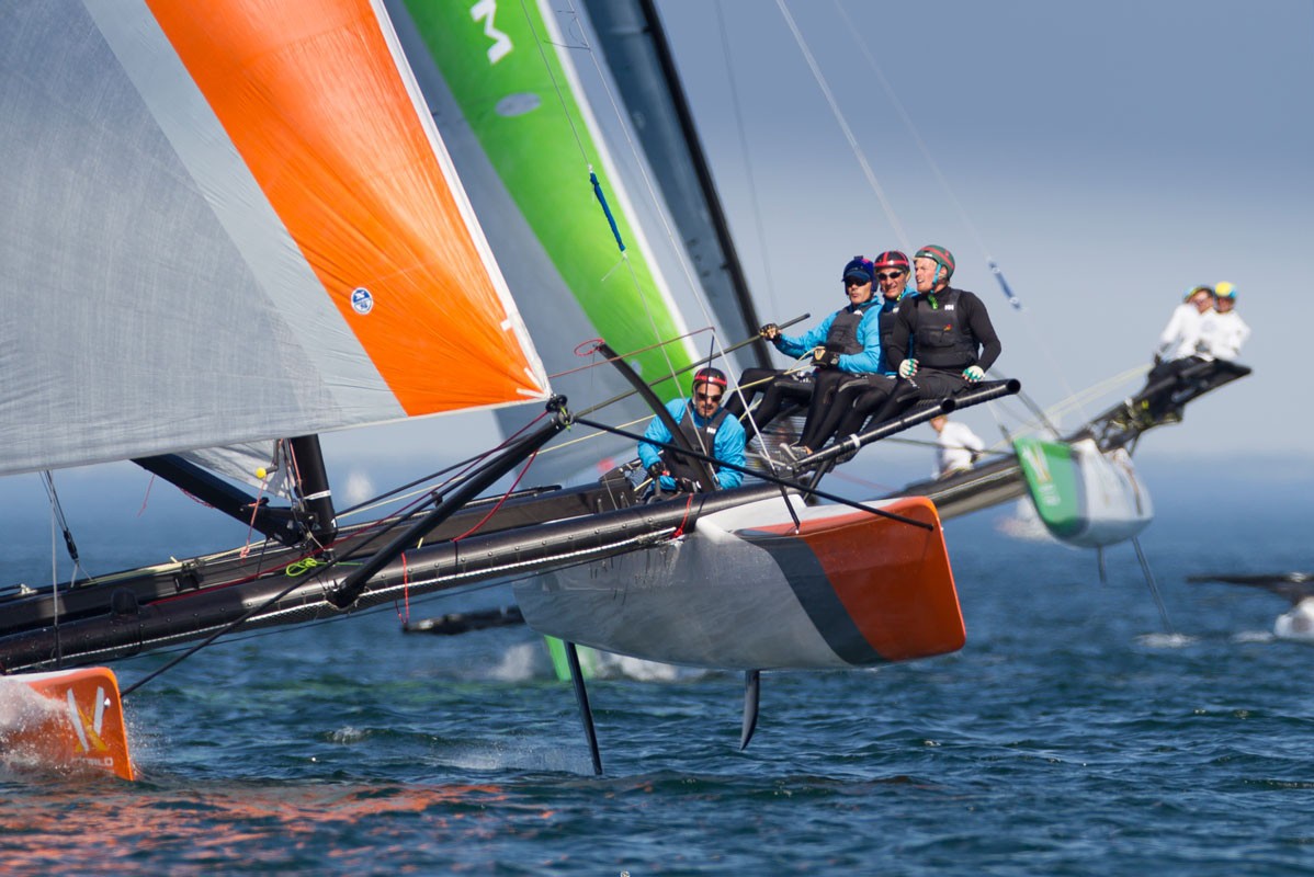 For first-timers like Michael Hestbaek, for all his experience in Olympic and America’s Cup competition, today’s racing was a big eye-opener. “It was intense, I mean, really intense,” said the Dane. “You’re waiting to go racing, then you get on the boat and literally a minute later, you’re in the starting sequence! There’s no time to think, the blood starts pumping and you are in this intense experience where you barely have to think. In fact I could barely speak, my mouth was so dry from, I don’t know what, adrenalin maybe? I was making calls to the crew but I could barely get my words out.” With finishes of 1,5,1,4, Hestbaek has seen both ends of the fleet. “I can tell you that wasn’t my plan, but it was very clear why we won when we won, and why we lost when we lost. It is very exciting racing, the M32 is so responsive on the tiller, and I can’t wait to get back into it tomorrow.”