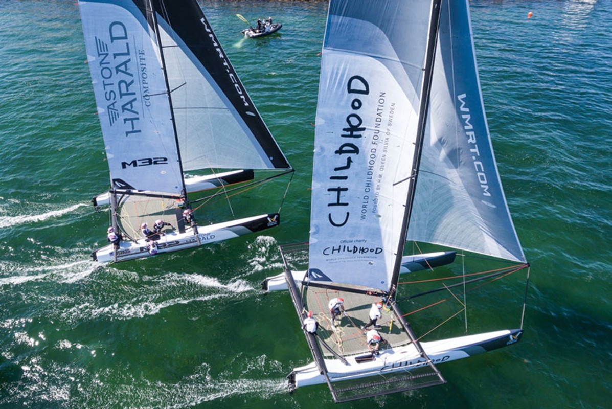 Today was Berntsson’s first experience of match racing in the M32 yet he took to it like a duck to water. He’s not short of years on the Tour, but it was impressive how quickly he is putting the game together in this new format. “I’m learning as we go round the course, just listening to what my crew tell me to do. They’re my coaches and I just need to keep on doing what I’m told.”
