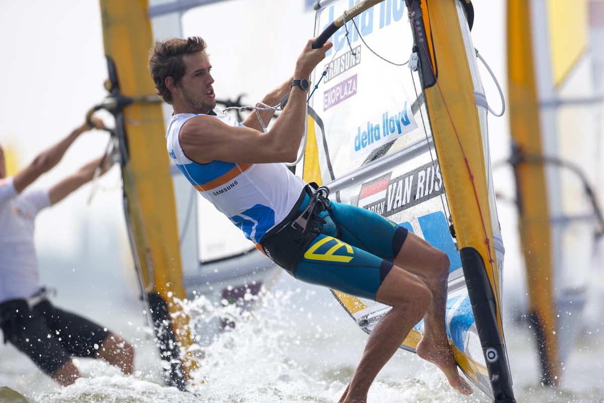 Likewise Dorian van Rijsselberghe (NED) has already wrapped up the RS-X class. He leads by 33 points. Four sailors remain in contention for the other medals. “I am competing here with ‘b teams’ and very young windsurfers who are not focused on Rio. They are all 5 kg lighter than I am and this makes a very great difference. I got the idea they all started with one goal, to beat the Olympic champion. So for me it has been a good week of training. With this weather they all pass me and I had to pump quite a lot to stay up with them. Day by day I am getting better for Rio.”