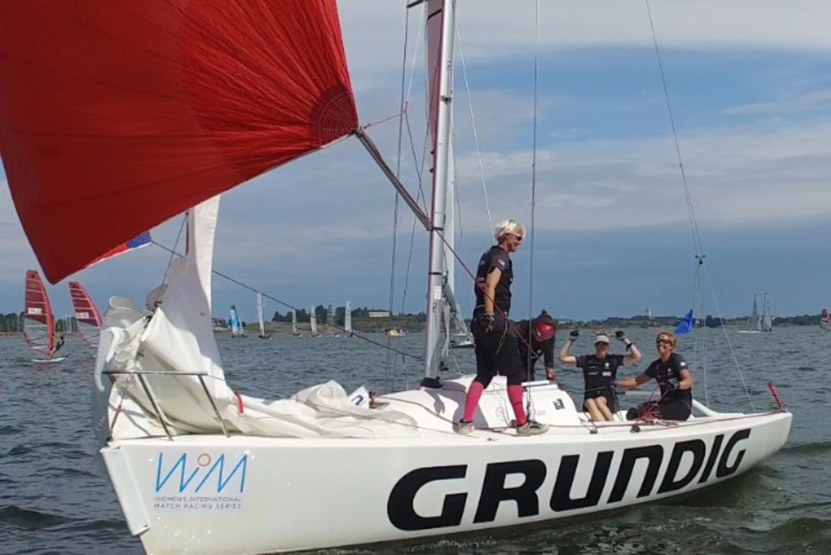The final day of the Helsinki Women’s Match, the opening event of the 2016 Women’s International Match Racing Series, started off in the morning with some sunshine in-between the clouds, but flat water and very little breeze off Hernesaari (Ärtholmen).