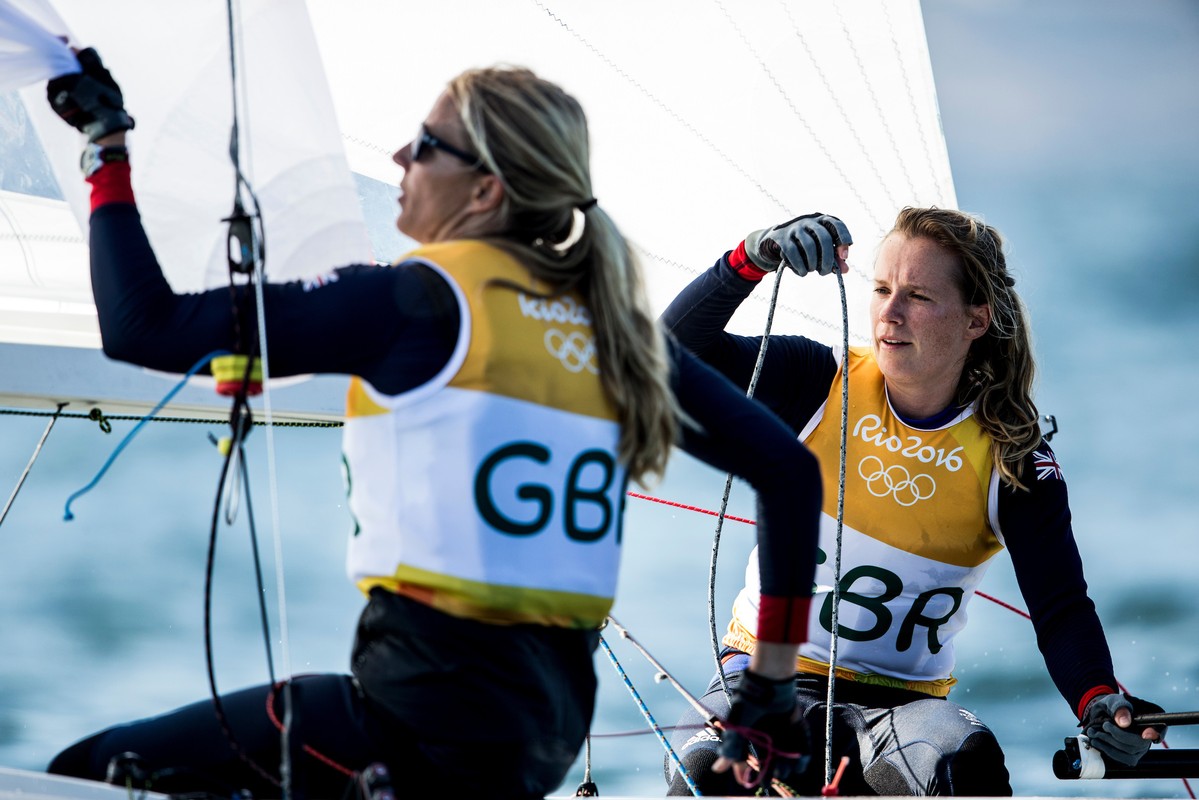 Hannah Mills and Saskia Clark (GBR) have won the Women’s 470 gold medal with the Medal Race to spare. The British team, who took silver four years ago at London 2012, sailed a very solid day with scores of 3,2,3 to carry an unassailable 20-point advantage into tomorrow’s Medal Race. The only thing that stands in the Brits’ way is if they receive a technical two-point penalty for failing to follow pre-Medal Race procedures. But they’re unlikely to jeopardise their gold with any such oversight. Their arch-rivals, the defending Olympic Champions Jo Aleh and Polly Powrie (NZL) have sailed an incredible comeback series after clocking up two expensive disqualifications earlier in the competition. The Kiwis’ scores of 1,1,4 today have lifted them back to the silver medal position, with the double-points Medal Race poised for a fierce battle for silver and bronze as six teams are separated by just 11 points. They are Slovenia, USA, France, Japan and the Netherlands. Austria’s double World Champions have had a disappointing week by their high standards, but Lara Vadlau and Jolanta Ogar still have an outside shot at silver or bronze.