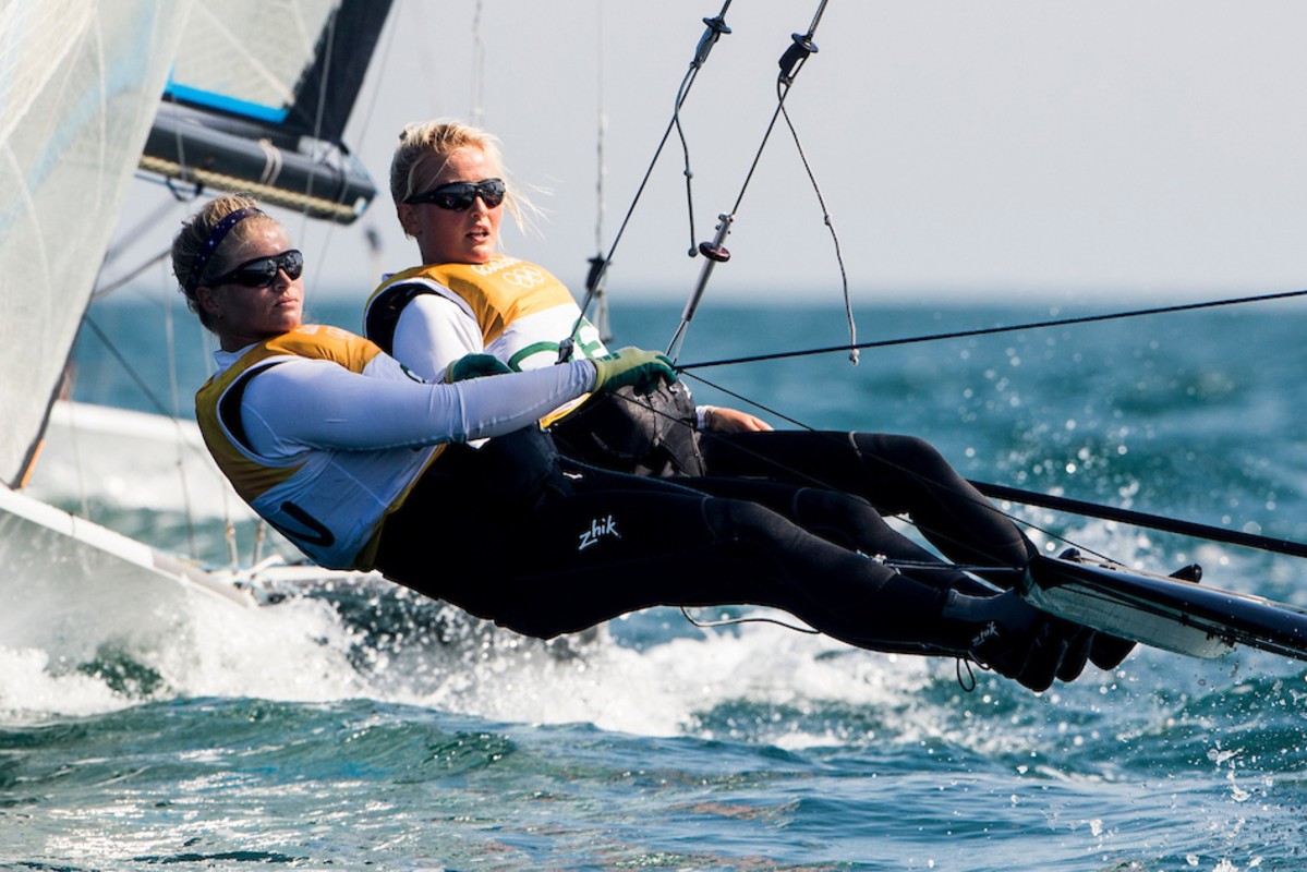 They are: Tamara Echegoyen and Berta Betanzos (ESP), Martine Grael and Kahena Kunze (BRA), Jena Hansen and Katja Salskov-Iversen (DEN) and Alex Maloney and Molly Meech (NZL).