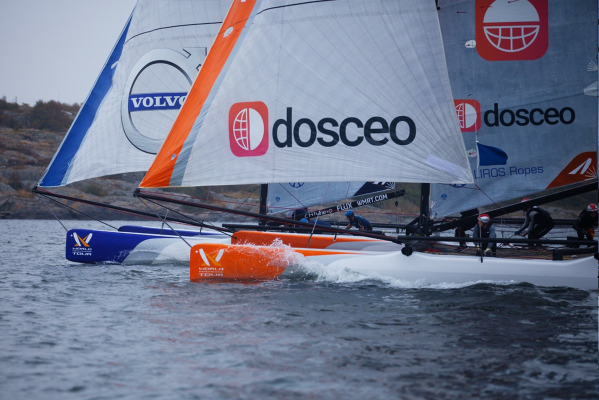 Trailing Gilmour and Wallén are the two winners from Sopot, Torvar Mirsky (AUS) and Nicklas Dackhammar (SWE), both on four points each. Dackhammar, who’s been known to sail the M32 really quickly, fell short in a couple of matches due to errors not usually to seen by Essiq Racing Team. Mirsky, who is sailing with Max Salminen (SWE), Allan Nørregaard (DEN) from the West Coast Cup and Damien Garbowski (AUS) still needs to gel the team together in order to challenge for the top. The event is far from decided though, with a full round robin to complete before the Semi Finals and Finals.