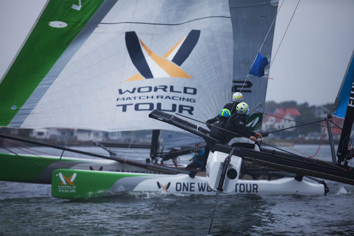 David Gilmour (AUS) is sitting pretty at the top of the leaderboard with his only loss in this regatta so far coming against Philip Bendon (IRL). Gilmour’s solid performance has put him in a commanding position for a Semi Final berth tomorrow. Bendon Race Team who have been struggling to adjust to match racing the M32s took another heavy weight win today when they also beat Essiq Racing, skippered by Nicklas Dackhammar (SWE). Dackhammar who had two wins and two losses today still has a good chance to make it into the Semi Finals as he has a two point lead over Måns Holmberg (SWE) and the Typhoon X crew.