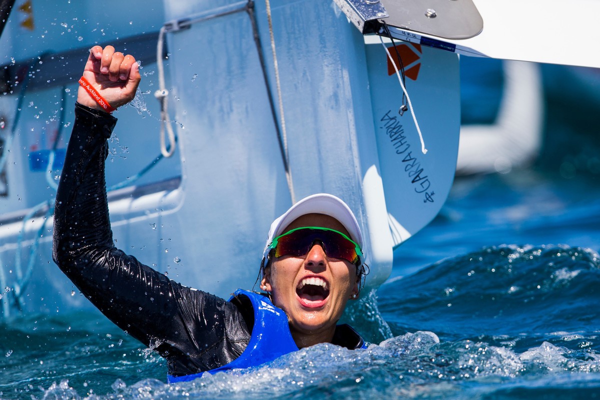 In a carbon copy of the boy’s fleet, the girl’s RS:X had a fight for bronze as its centrepiece. Israel’s Katy Spychakov was this time looking for a top order finish and took silver with a third. For bronze it was between China’s Yue Tan and Peru’s Maria Belen Bazo. This time the Chinese sailor missed out as she was disqualified handing Peruvian Bazo the bronze medal.
