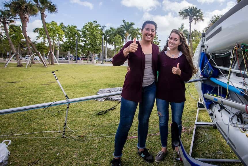 Nuevas generaciones como las hermanas Atlantic y Nora Brugman, que con 26 y 24 años disputan en Miami su primera regata juntas y en la clase 470 F. La más joven, Nora, fue la tripulante de la coruñesa Sofía Toro el año pasado, en la búsqueda de la clasificación olímpica para Río 2016. Pero el nuevo año y el nuevo ciclo olímpico le ha traído nuevos desafíos: formar pareja con su hermana, que prácticamente se sube por primera vez a un 470, y hacerlo bajo los colores de Estados Unidos. De padre estadounidense, las dos regatistas catalanas viven juntas desde hace unos meses en San Francisco, donde trabajan como monitoras de vela, y disputarán las World Cup Series de Miami con el código USA en su vela. “US Sailing, la federación estadounidense de vela, nos ha ayudado mucho, nos ha prestado el barco, nos ha invitado a participar en varios clínics, y nos ha gestionado los papeles para poder competir por Estados Unidos”, relata Atlantic. “Incluso Malcolm Page, el nuevo jefe del equipo olímpico americano, que ha ganado dos oros olímpicos, está pendiente de nosotras y nos da consejos sobre cómo mejorar, ¡es genial!”, añade Nora.