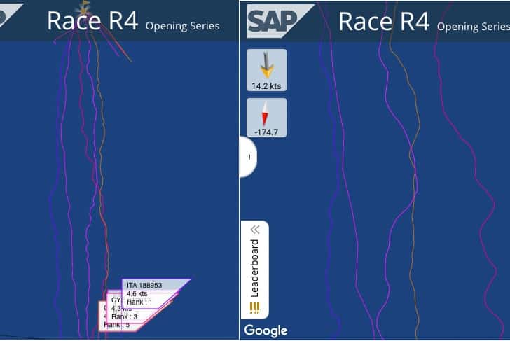 He wasn’t as fast. His average speed on the first run of Race 4 was 6.4 knots, while the rest of the top 5 were between 6.82 and 6.89. On the second run, Pescheira averaged 6.6 knots while the other four sailors were between 6.82 and 7.27.