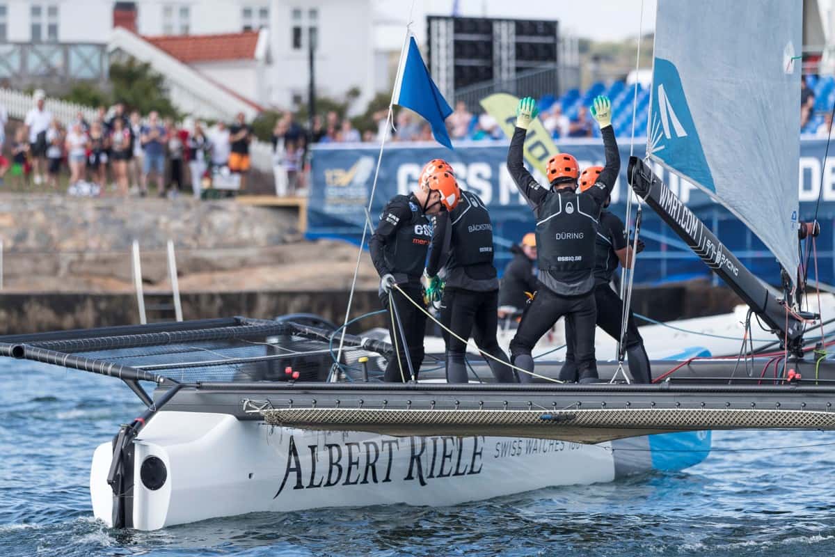 GKSS Match Cup Sweden is renowned for drawing out performances from local sailors, fired up by crowds cheering them on from the perimeter of Marstrand Arena. This occurred today when Nicklas Dackhammar’s ESSIQ Racing Team, 15th on the World Match Racing Tour leaderboard, overcame Australian Matt Jerwood’s Redline Racing 5th placed team in a five race marathon.