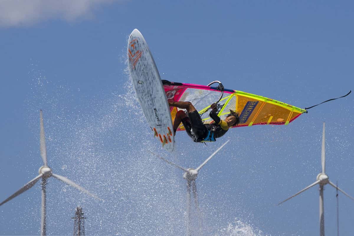Mauch consistently scored some of the highest wave scores of the day with slick turns and a strong aerial game and that proved crucial – particularly in his final heat of the day against Aleix Sanllehy (Tabou / GA Sails) when the 21-year-old performed a buzzer beater by producing a 7.88 point final wave to defeat the Catalonian by just 0.33 of a point.