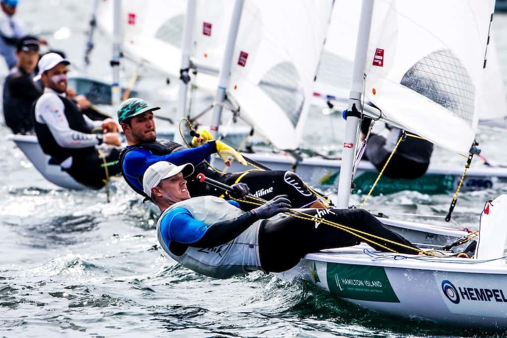 The Australians dominated in the Laser Class and claimed the top two spots. Tom Burton finished first followed by Matthew Wearn. Third position, overnight, belongs to Thomas Saunders (NZL).