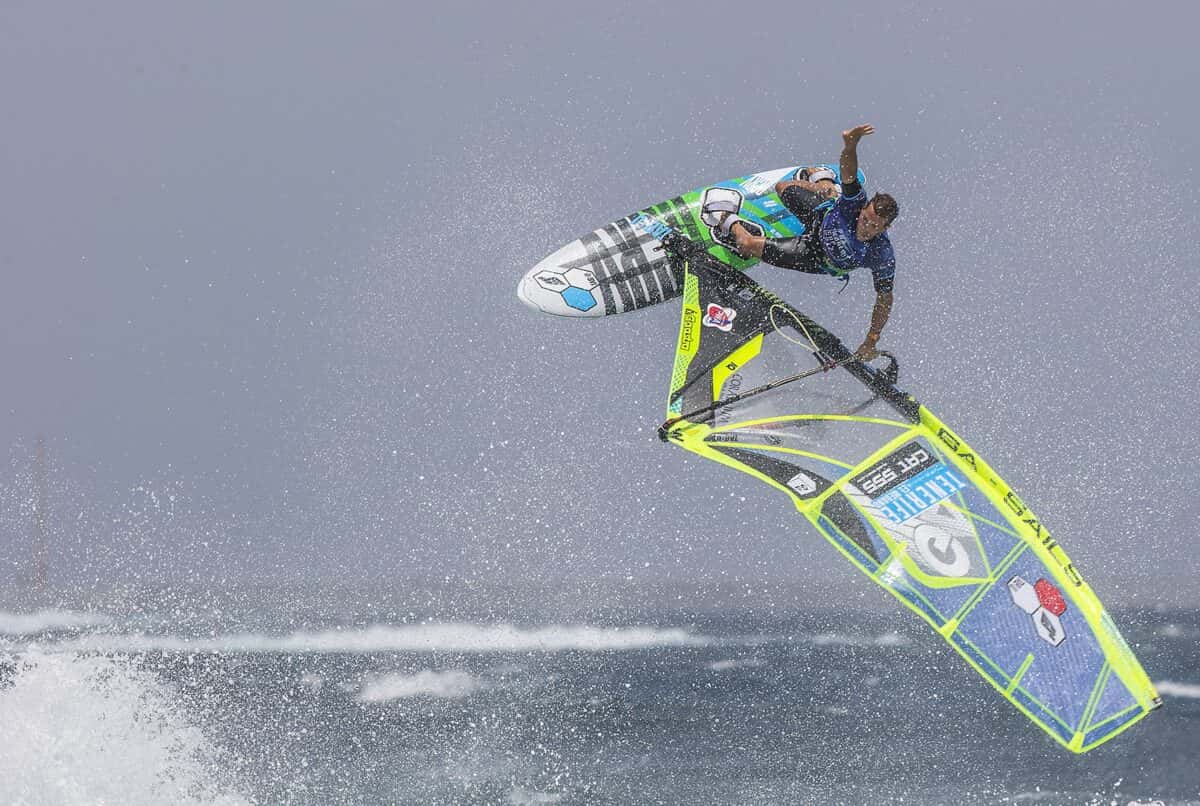 Today, the 29-year-old managed to do just that with a combination of doubles, one-handed and one-footed backloops, while on the wave he linked together his usual explosive turns with radical frontside 3s and takas to first take down Antoine Albert (Goya Windsurfing), before claiming the scalps of Jaeger Stone (Starboard / Severne / SWOX / Shamal Sunglasses) and Marcilio Browne (Goya Windsurfing).