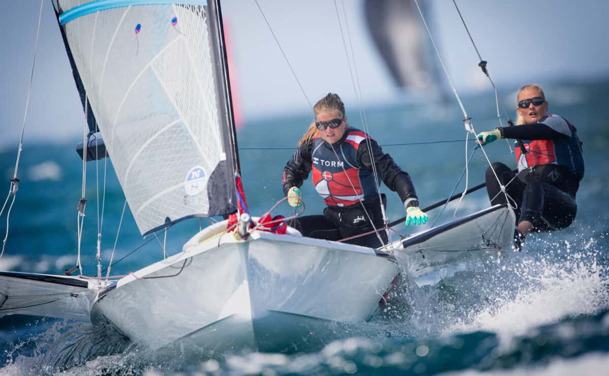 Olympic silver medallists Jena Hansen and Katja Iversen (DEN) have never won a World title, but the only top women’s team to avoid a capsize today may be on the verge of their first.