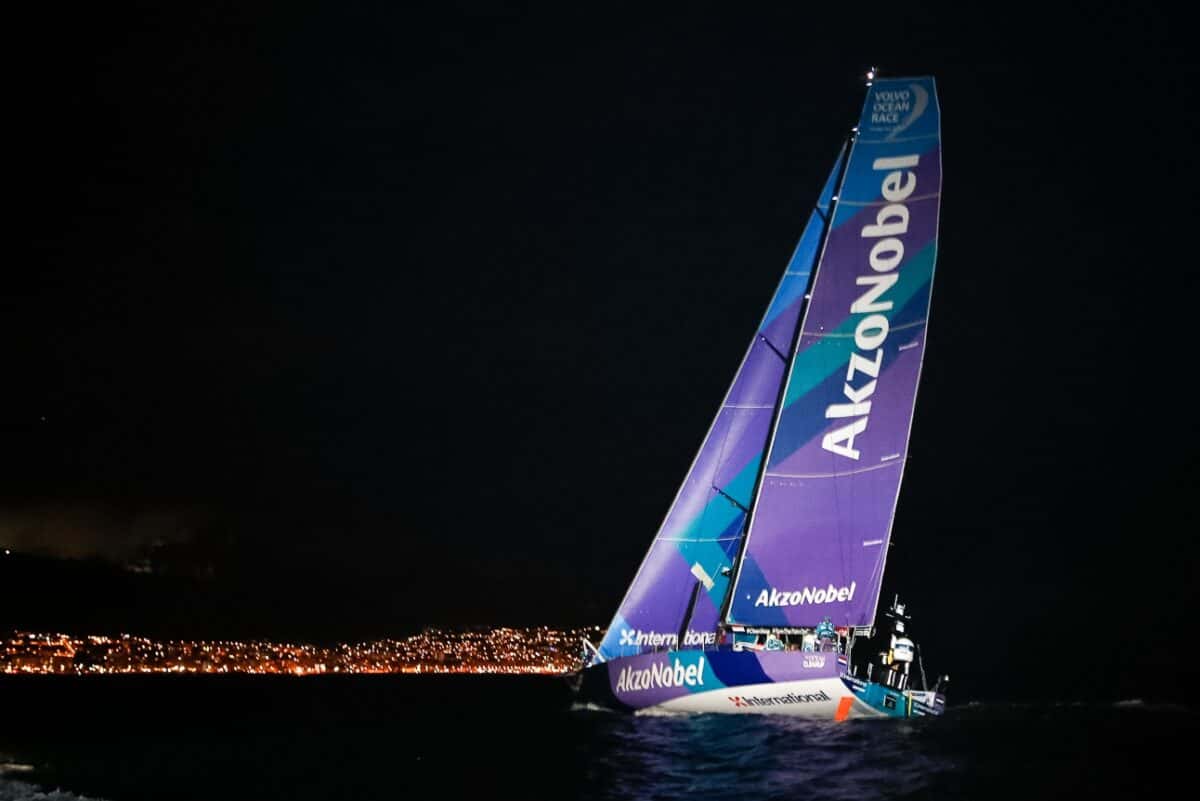 Team AkzoNobel secured a fifth-place finish on Leg 2 of the Volvo Ocean Race on Saturday night, the crew holding their nerve as the wind died and swirled near the finish line, with the two boats behind sailing fast and less than 4 miles away.