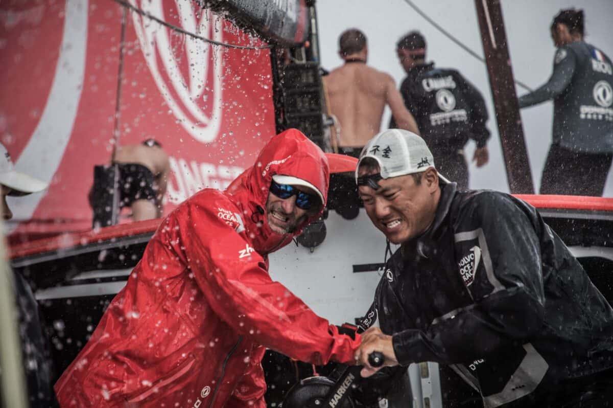 “Conditions have been really tricky,” said Carolijn Brouwer, crewmember on Dongfeng. “The wind picked up from four to 11 knots so we started shifting all the weight back in the boat. As soon as we’d finished the wind dropped again and we had to move it all back. It’s a real dance we have to do.”