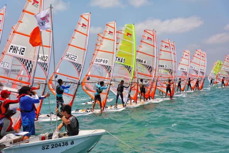 12 races completed over 4 competition days, in an unusually windy Singapore. There were 3 qualification places in both men’s and women’s Youth Olympic Games windsurfer event being contested by 11 Asian nations – with the 12th country, Hong Kong, already qualified at the World Championships held in Quiberon, France last year.