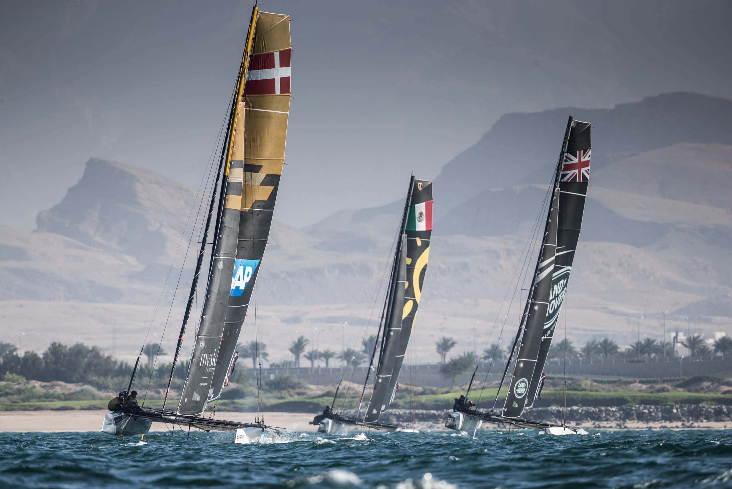 SAP Extreme Sailing Team weren’t the only ones to deliver strong results on the Omani waters. Team México, skippered by Erik Brockmann, achieved their best result of the competition, speed to the finish of race 16 ahead of British contingent Land Rover BAR Academy.
