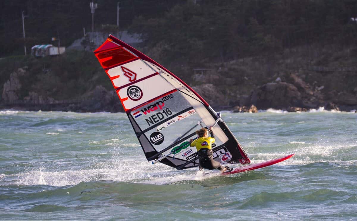 All looked to be going well with Erdil continuing to show excellent pace out in front as she aimed to reduce Cousin Questel’s advantage at the top of the rankings. However, disaster soon struck again for the Turk as when she entered the third gybe she hit a massive piece of chop, which sent her off balance and despite trying to desperately salvage the situation she ended up in the water and was left powerless as Cousin Questel swooped into the lead and notched up her 3rd bullet of the week, which should all but seal the event victory here in South Korea for the 26-year-old.