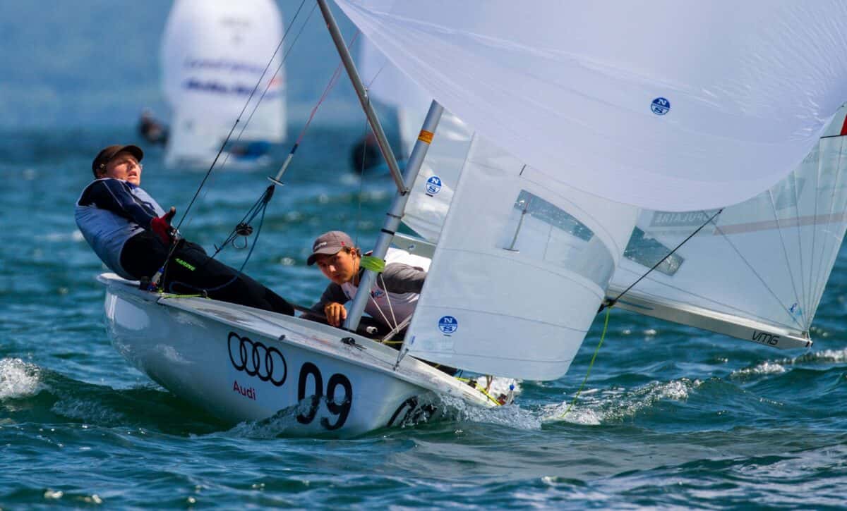 One point behind are Spain’s Jordi Xammar/Nicolas Rodriguez, who sit on equal points with the reigning 470 Junior European Champions, Giacomo Ferrari/Giulio Calabro (ITA), in third.