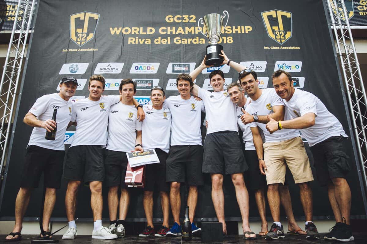On Lake Garda today, the Schneiter family’s Team Tilt, managed by father Alex and steered by Olympic 49er sailor son Sébastien, was crowned first ever GC32 World Champion. Apart from a brief falter in today’s final race, the Swiss team over the last three days never finished a race lower than fourth, despite tricky conditions, a variety of race courses and wind strengths that Lake Garda threw at the 13 teams.
