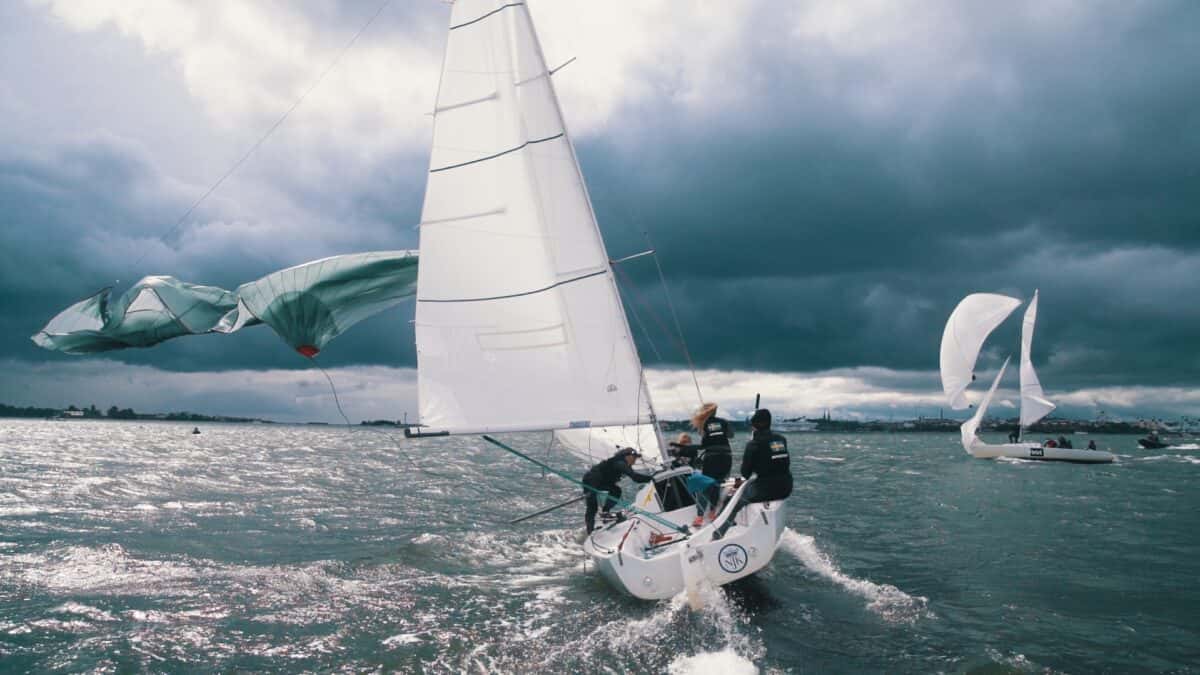 In the breezy finals the Danish Team Kattnakken “focused on sailing the shifts and picking our moments to tack and gybe to stay in control” said the tired but happy crew after emerging from a refreshing sauna.