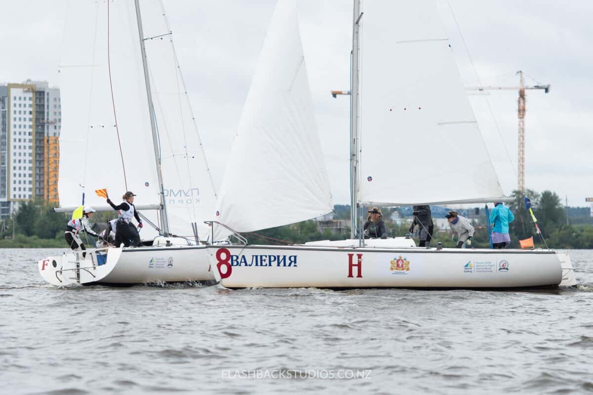 Ekaterinburg’s famous Verkh-Isetsky pond keeps presenting the sailors with great challenges and the penultimate day of the 2018 Women’s Match Racing World Championship saw the trend continue as the field was reduced to four teams in a strong northwesterly wind.