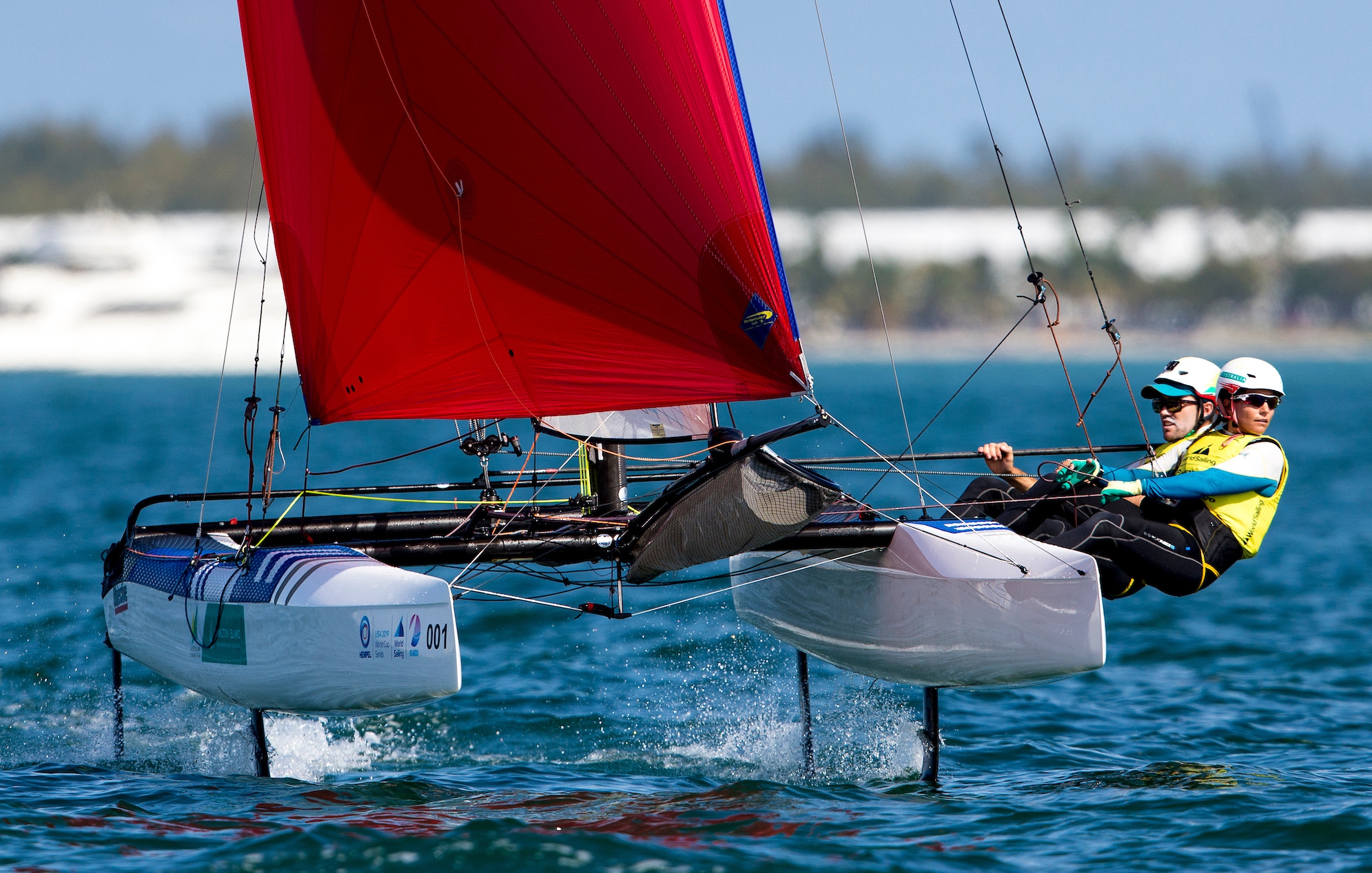 For Jason Waterhouse and Lisa Darmanin (AUS), the silver medallists from Rio 2016, one of the areas in need of improvement is light air speed. They came to Hempel World Cup Series Miami looking for the light, shifty conditions that most recreational sailors would rather avoid. To their delight, Biscayne Bay has delivered just what they needed.
