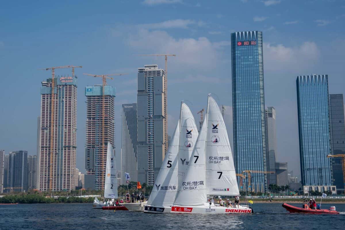 The 2024 World Match Racing Tour Shenzhen Bao’an Final continued today with variable conditions testing teams throughout the day. Eleven flights of the round-robin have been completed, with Chris Poole’s Riptide Racing (USA) leading the standings with six wins. Close behind are Johnie Berntsson’s Berntsson Sailing Team (SWE), Cole Tapper’s CYCA (AUS), and Ian Garreta (FRA), each with five wins.