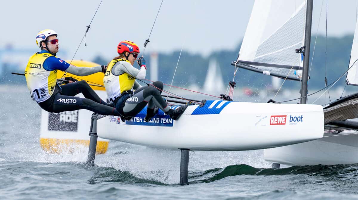 The strongest mixed sailing crews at Kiel Week so far come from Great Britain. After the second day of the Sailing Grand Slam in the Olympic mixed classes on Thursday (June 26), Martin Wrigley and Bettine Harris are leading in the 470 even more convincingly than John Gimson and Anna Burnet in the Nacra 17. German hopes so far rest on Theresa Löffler and Christopher Hoerr (Lausanne/Röthenbach) in the dinghy, who are just two points behind the podium.