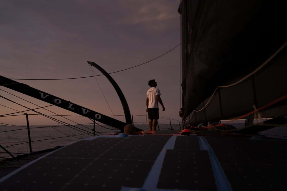 “At least we are moving,” commented Nico Lunven aboard Team Holcim – PRB. “The fleet is not totally stopped and we are moving in the right direction, which is nice. It’s such different conditions to when you have some wind and you are locked inside the cockpit, with the boat doing 25 knots and plenty of water everywhere.”