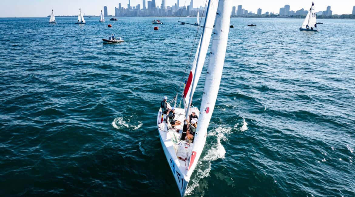 Despite the Windy City’s famous skyline providing a dramatic backdrop, conditions on the lake proved anything but straightforward. Light and shifty breezes drifting in from the north-east tested crews throughout the day, with constant pressure changes demanding patient boat handling.