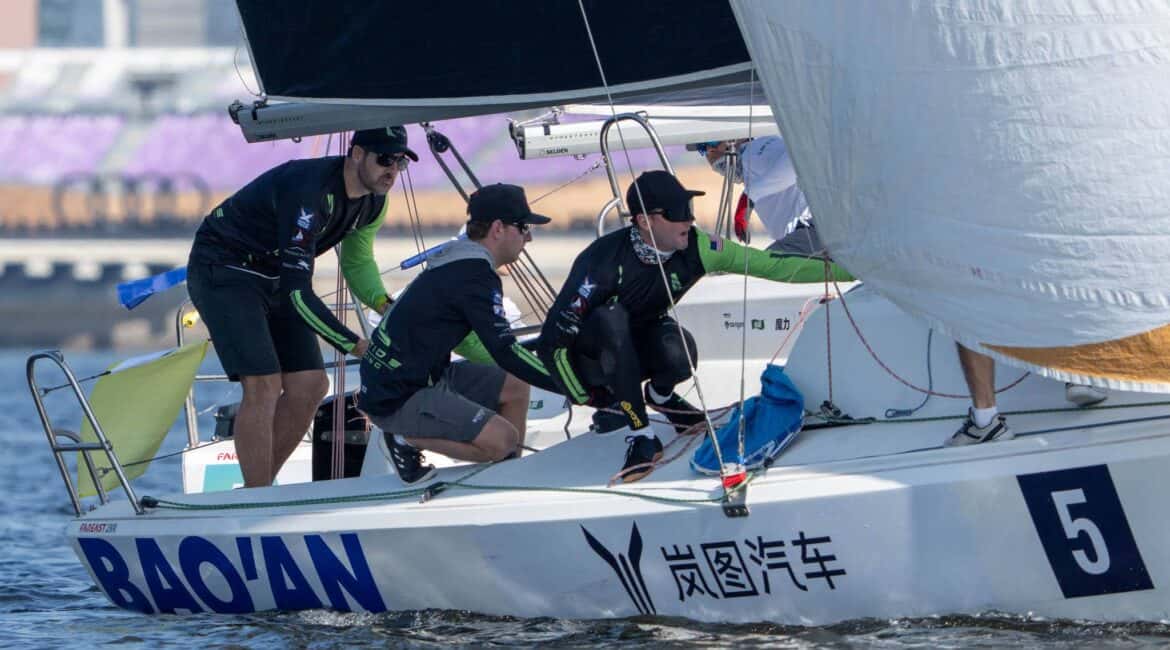 Day 4 at the WMRT Final Shenzhen Baoan for the 2025 Match Racing World Championship saw the final four skippers emerge from a challenging and hard fought quarterfinals in light and unpredictable airs.