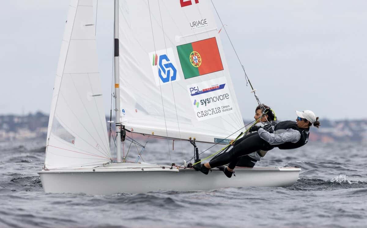 The day started with light and shifty winds. The Race Committee hoisted the O flag after the first upwind leg. In both fleets, Portuguese crews were leading early in the races. In the white fleet, Beatriz Gago and Rodolfo Pires finished third, while Diogo Costa and Carolina João won the race with a clear advantage.